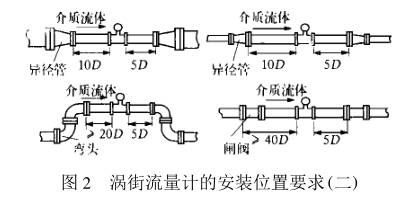 (2) 涡街流量计安装应远离动力线路、大功率电气设备以及其它强电磁干扰场所。